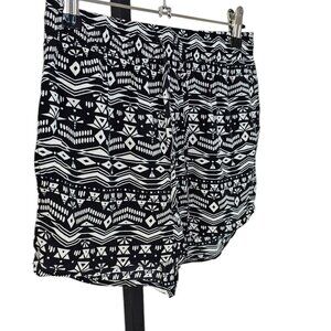 Garage Womens Tie Waist Aztec Short, Black, White, Lightweight, Size XS