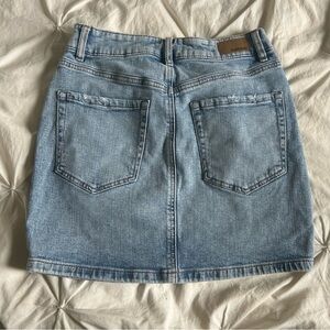 Stylish denim blue skirt perfect for casual outings. Features a classic design with a modern twist. This item is free from rips and stains! It has only been worn a handful of times and is ready for its new life in your closet!! Comes from a smoke free home, washed on delicate and dried on low.