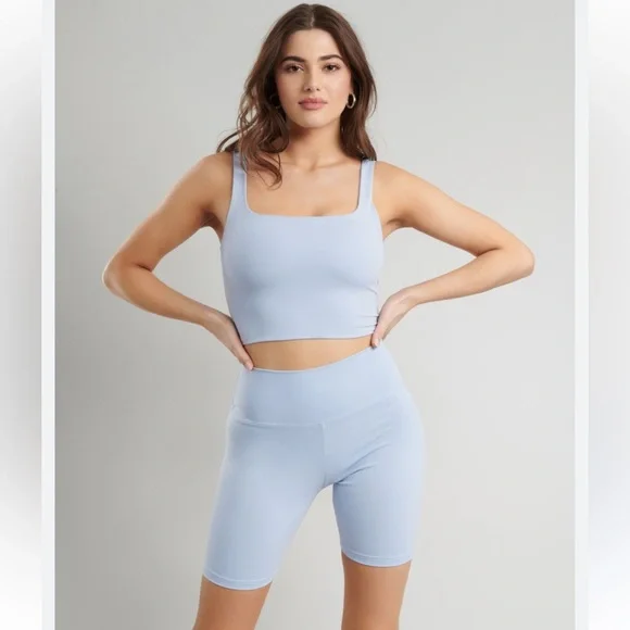 Garage exercise set - cropped tank top and high rise biker shorts!