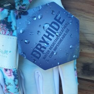 brand new gardening gloves, made from recycled materials and have tags still on them. beautiful flower design and colors