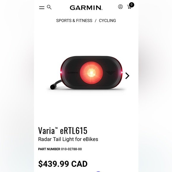 Varia eRTL615 bike sensor light. Brand new and unused condition. Regular price $439 + tax. Connects to your phone or computer and can give audio and visual notifications of approaching vehicles.