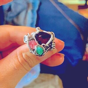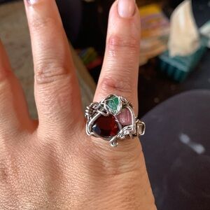 Garnet Emerald and rodiolite Sterling silver ring
