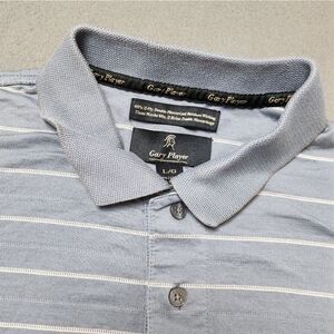 Gary Player Grey Striped Short Sleeve Golf Polo Shirt.Gary Player Polo Shirt Mens Large Gray Cotton Retro