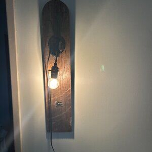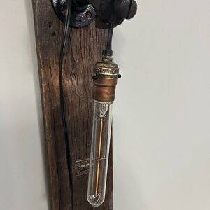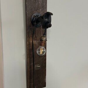 Lamp is home made, in Canada. Made from recycled parts, old gas pump. This is one lamp. LED round bulb is included.