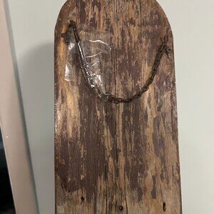 The wood used in the creation is very old, still solid in its present condition. I was told the wood came from an old barn.