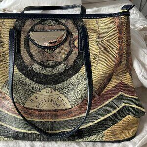Gattinoni’s Roman atelier is famed for its graphic “Planetarium” motif—bold, art-driven and instantly recognizable. Carry it to elevate denim and a crisp white shirt; or sling over a column dress and flats for a chic day-to-dinner switch. Light superficial scratches to plaque only; corners, lining and structure excellent.