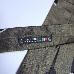 Gattonero Men's Necktie 100% Silk Green with Black and White 58" x 4" Italy