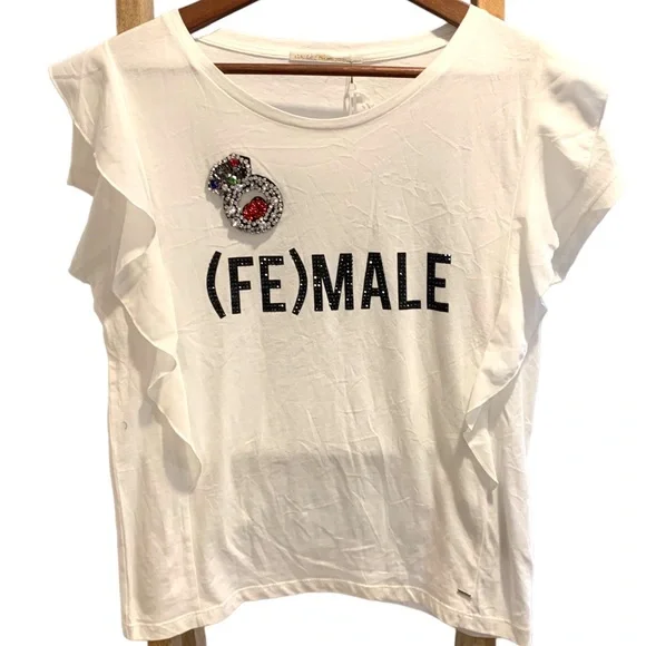 Gaudi t-shirt Brand New with tags Embellished Frill sleeves
