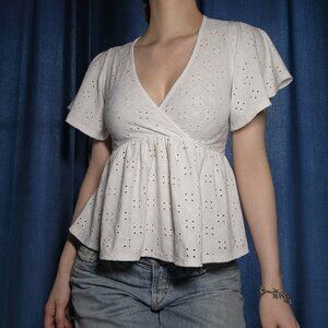 Gaze Apparel white eyelet babydoll top ✦ white puffy-sleeved wrap top ✦