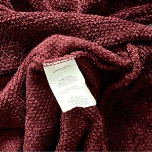 Gaze cozy sweater. Dark wine or Maroon or Burgundy colour. The chenille is low pile giving you a cozy feel & look with NO fuzzy pilling. Overall great condition. Soft with great stretch