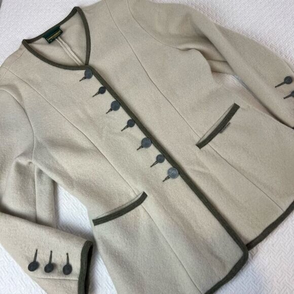 Geiger Pure Wool Coat Women 38 size Medium Jacket Cardigan Austrian Cream Green