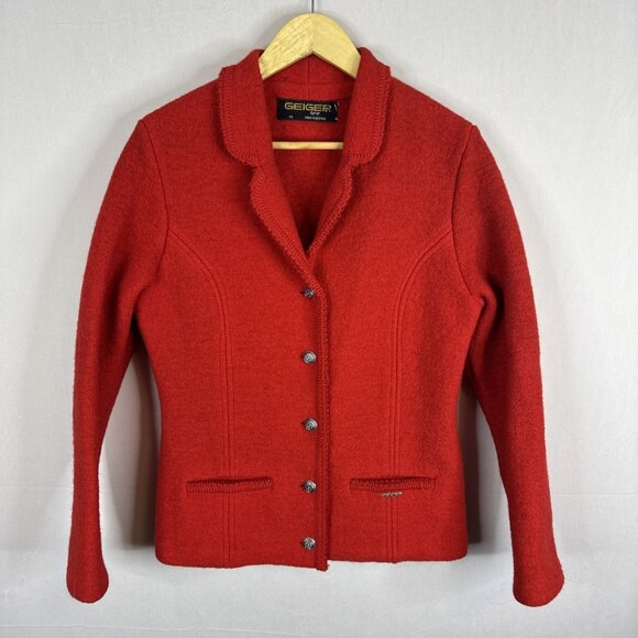 Geiger Tyrol Austrian Boiled Wool Jacket Red Women’s EU 44 Made in Austria