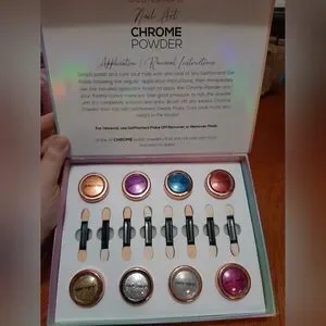 Comes with the first 8 chrome that gelmoment offers, and application brushes.