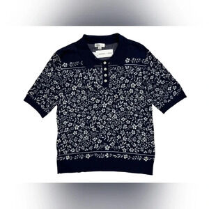 Gemma + Jane NWT Polo Knit Floral Blue/White Size Medium