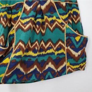 Gemma Silk Mini Skirt South Western Aztec Pattern Pockets Medium