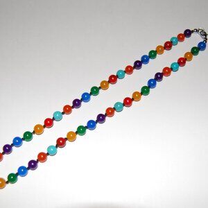 Gemstone Necklace,Knotted Multi Color Stone Necklace,Colorful Necklace,8mm Beads