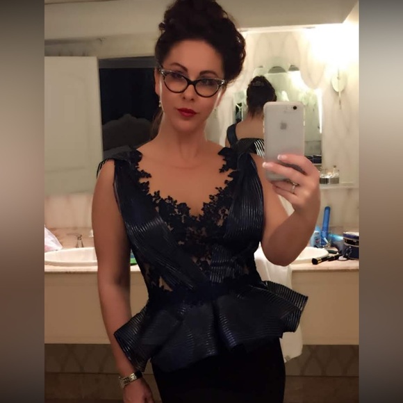 Stunning and flattering bustier. Mesh peekaboo at neckline and sides. Stiff fabric that holds it shape.