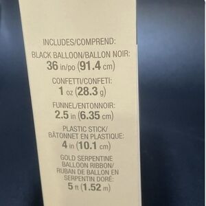 (1) 36" (91.4cm) black latex balloon; 1 oz of pink Tissue and gold foil confetti; 50 feet of gold foil balloon ribbon
