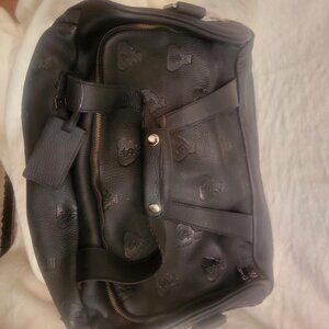 This high-end collector leather duffle bag is in excellent pre-owned condition. Designed by Dussault along with the frontman & leadsinger from KISS, Gene Simmons. Together they launched a line of premium Italian embossed leather luggage collection called "Money Bags" they are accented with a logo depicting, as the title suggests, bag's of money with an embossed dollar sign.This Gene Simmons leather handbag collection includes an immaculate duffle bag accompanied with a very stylish Monte Carlo Size Messenger Bag. Considering Simmons extravagant rock 'n roll reputation, These ‘Money Bag’s are rare limited edition and only 1000 pieces were made.