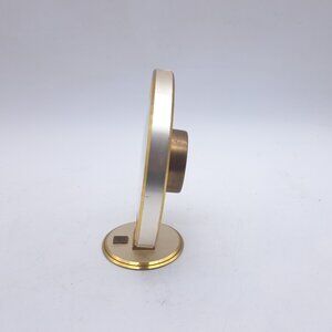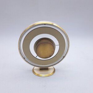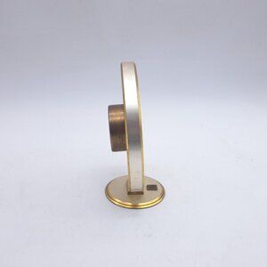 A vintage battery powered clock made by General Electric in the former West Germany before reunification in the 1990s (the front says made in Germany and the rear says West Germany). It is circular and has the hours in Roman numerals; I ran it for a day and it gained or lost no time. It uses brass on its front, base and on the rear. It takes a LR1 1.5V battery which I included (its a PK cell so I don't know how long it will last).