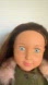 * 18” doll dressed in riding outfit – green sweater, faux fur vest, khaki pants, brown boots & pink American Doll helmet