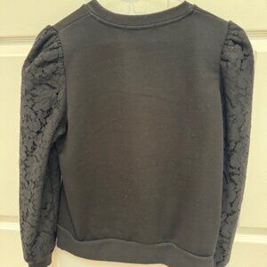 An elevated loungewear piece to live in. Its heavy-weight french terry fabric gives it an ultra soft feel while semi-sheer all-over lace puffed sleeves add a chic touch. Comes finished with a crew neckline and ribbed cuffs.