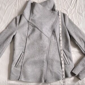 This Generation Love Sherpa Lined Asymmetrical Moto Jacket is in very good, pre-owned condition. 100% polyester. Zips at both cuffs. Two front pockets. Sherpa lining makes this a perfect fall to winter transitional piece! Size small - please see pics for approximate measurements.