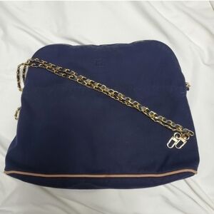 Please see photos for the closing mechanism. Gold hardware. Light weight.