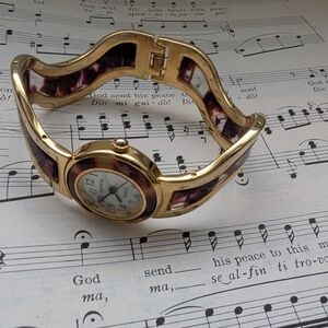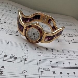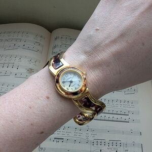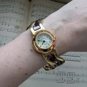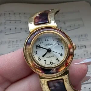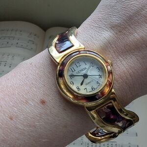 Elegant Geneva watch with a gold-tone case and brown accents. Perfect for adding a touch of sophistication.