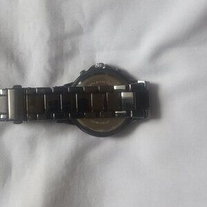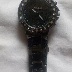 Geneva Japan Move Black Watch Rhinestone Bazel, Gun Metal, New Battery, Working