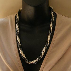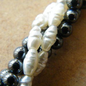 Vintage necklace made with genuine freshwater rice pearls and hematite beads.
