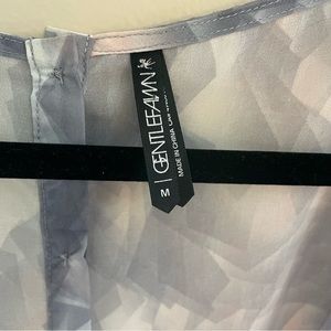 Gentle Fawn Broken Glass Abstract Sleeveless Button Down Back Wrap Over Skirt, Romper Dress, Elastic Waist, 3/4 Button down back, wrap skirt, Tank liner, chiffon look,