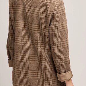 The Sapphira jacket is made of a soft, brushed fabric and is fully lined. Features include a button front closure and patch pockets.
