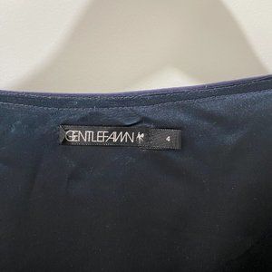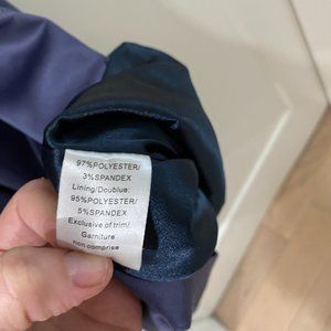 Unique satin mini dress. Lined with a side zipper. Navy-dark purple. Gunmetal buttons.