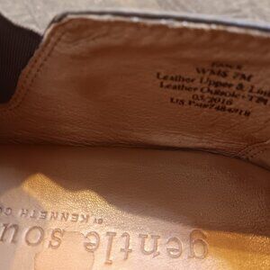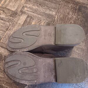 High quality leather upper and lining with leather outsole and rubber grip for traction; elastic sides for easy slip on. Comfortable padded leather insole. In very good condition, worn a couple of times, minimal wear on the bottom. Super comfortable.