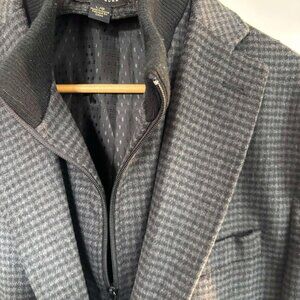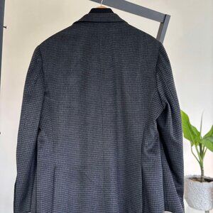 Elevate your style with this winter coat. Crafted from a blend of 65% polyester and 35% rayon, this piece features a classic damier pattern in gray and black, ensuring versatility for both daily wear and formal events. Two spacious interior pockets, perfect for securing your wallet, phone, or other essentials, while decorative exterior pockets add a touch of refined flair.