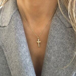 Genuine 10K Gold Small Cross Pendant Necklace Stamped 10K