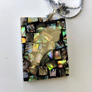 Genuine Abalone Shell Inlay Rectangular Pendant with Silver Necklace