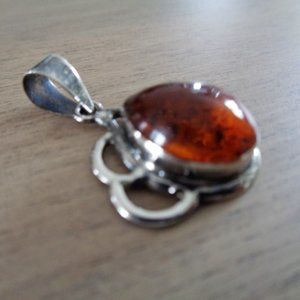 Unique Genuine Amber 925 Silver Pendant souvenir from Dominican Republic bought on a tour guide in a recommended jewelry store several years ago. I never wear it. 0.875'' high plus the attachment.