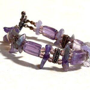 Genuine Ametrine & Amethyst Bracelet, Natural Gemstone & Copper Links