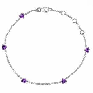 Genuine Amythest Heart Shape Dainty 925 Sterling Silver Gemstone Bracelet