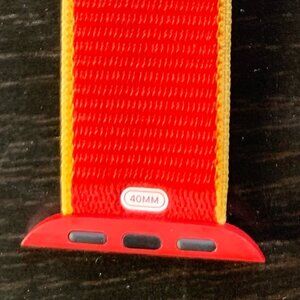 Vibrant Apple wristband. Red and yellow design. Perfect for style and comfort.