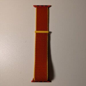 Vibrant Apple wristband. Red and yellow design. Perfect for style and comfort.
