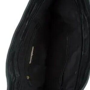 'Culture Riot' premium black genuine leather tote with patchwork and gold tone metal ring accents, 1x zipper and 2x plain pockets inside, measuring 12"x 20"x 6.5".