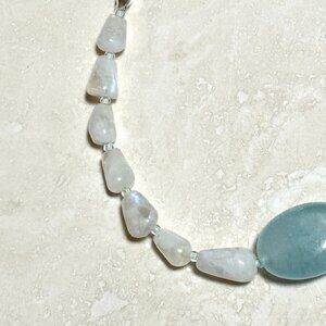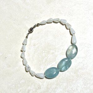 Genuine Blue Aquamarine & Rainbow Moonstone Bracelet, Beaded Gemstone Bracelet