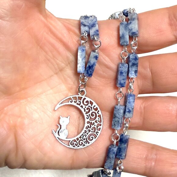 Genuine Blue White Sodalite Matinee Necklace, Gemstone Adjustable Necklace