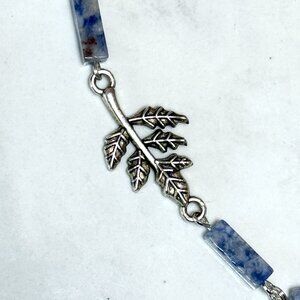 Genuine Blue White Sodalite Matinee Necklace, Gemstone & Leaf Branch Pendant