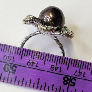 Genuine Brown Pearl and Swaroski Flower Ring Size 6