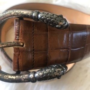Barely used - looks brand new. Genuine Brown leather belt. 1 1/2" wide, 38” total length of belt. Measuring from where the leather starts first hole is at 28.5” and last hole is at 34” Resembles Gucci Dionysus line.