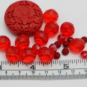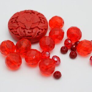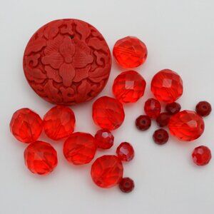 Genuine Cinnabar, Czech Glass & Crystal Bead Lot - Shades of Red - BEADLOT63